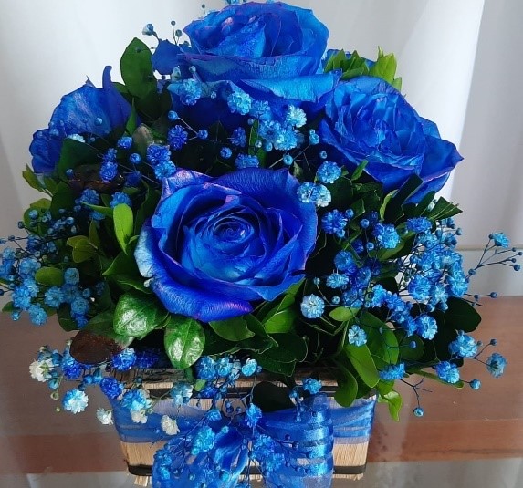 Arranjo no Cachepot com 5 Rosas Azuis