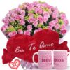 Buquê 12 Rosas Vermelhas+Chocolate 3un+Coração Pelúcia “Eu Te Amo” 62×34+Caneca “Mãe Como é Grande o meu amor”