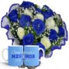 Buque com 12 Rosas Chá e Branca+Coração Grande “Eu Te Amo” 62×34+1Caneca “Exclusiva da Melhor Mãe”