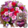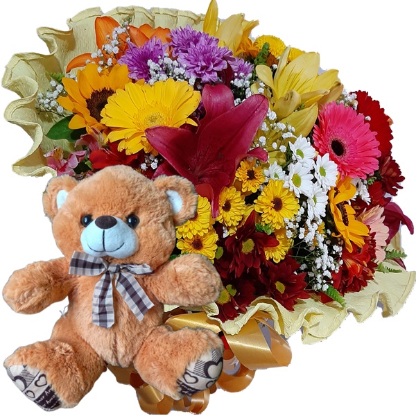 Buquê com Flores do Campo Nobre+Urso com Laço 25cm